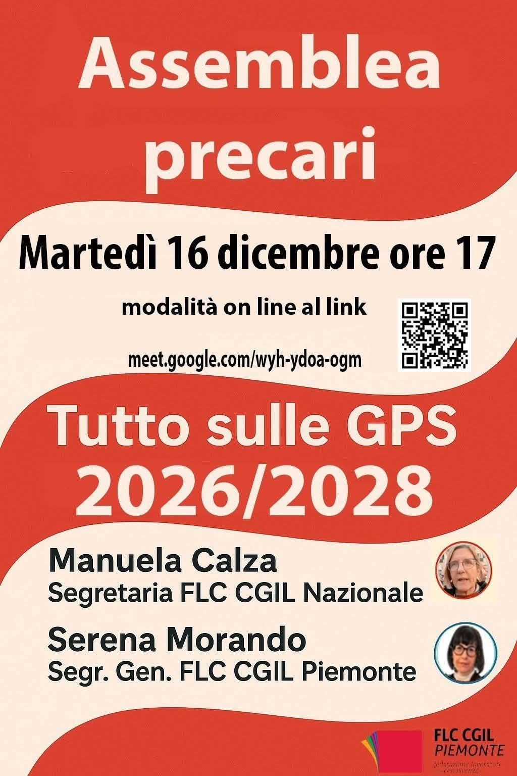 Assemblea sindacale FLC-CGIL martedì 09/12/2025 in presenza presso l’aula magna del Liceo Gaudenzio Ferrari di Borgosesia e online.